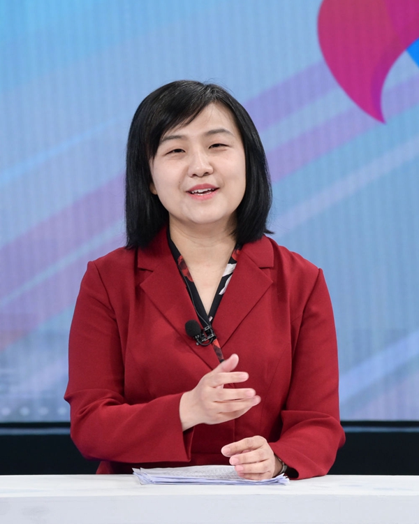 国家发展改革委国民经济综合司副司长李慧在中国经济圆桌会录制现场交流发言。新华社记者 李贺 摄