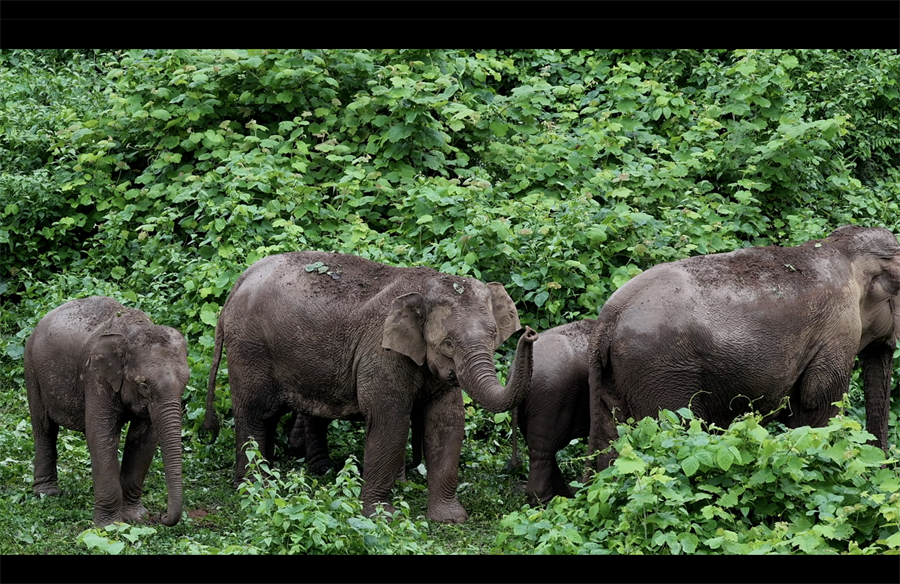 在西双版纳活动的野生亚洲象群。新华网发(周晨浩 摄)