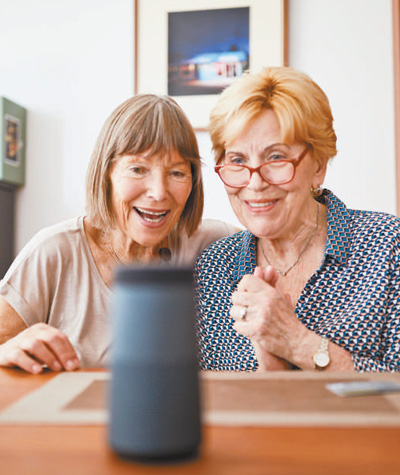 德国柏林两位老人在家中使用蓝牙语音设备。影像中国