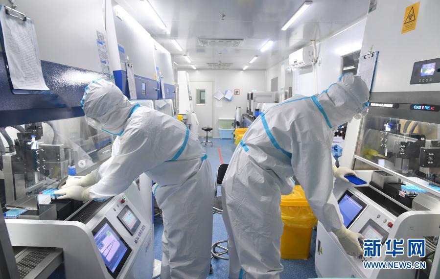 2021年1月3日,在北京市顺义区的一处核酸检测机构,工作人员进行核酸样本提取。