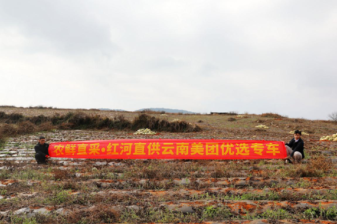 建水紫薯通过美团优选“农鲜直采”专车迅速从原产地抵达城市社区