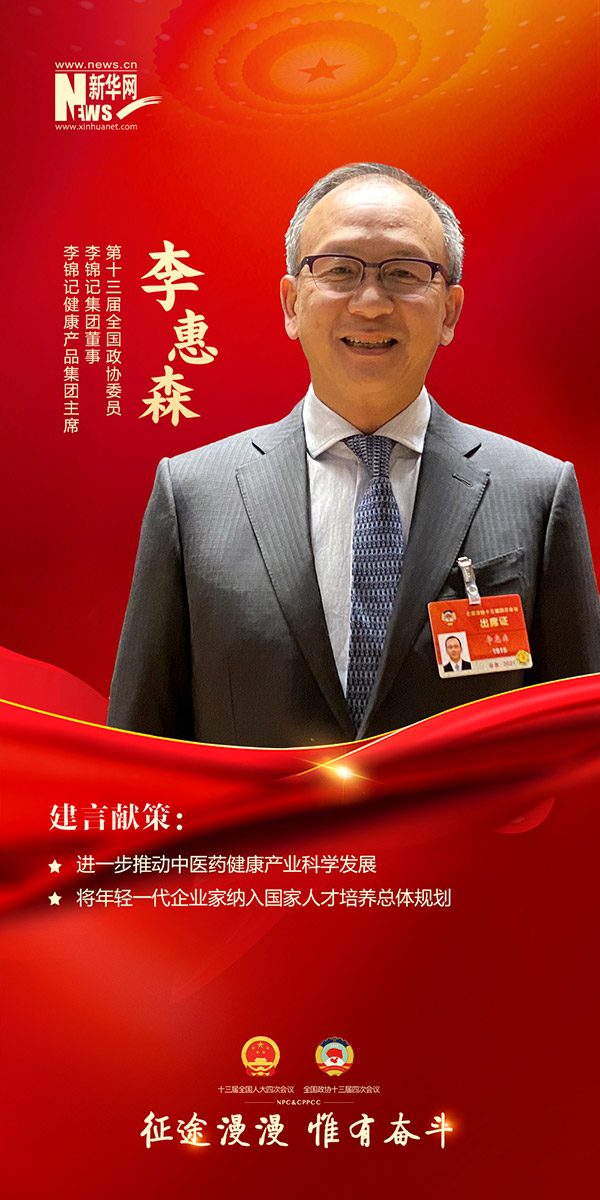 新华网北京3月6日电(任禹西)3月4日,全国政协十三届四次会议在北京隆重召开。全国政协委员、李锦记集团董事、李锦记健康产品集团主席李惠森提交了《关于进一步推动中医药健康产业科学发展的建议》和《关于将年轻一代企业家纳入国家人才培养总体规划的建议》两份提案。
