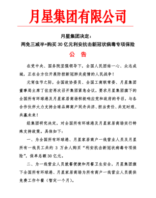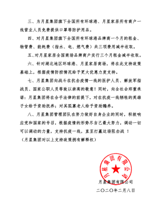 同时作为一名民企人,他在过去一年中带领企业向前发展的同时,始终不忘全国政协委员的身份,一直以更高的政治觉悟,把企业发展和服务大局结合起来。2020年,他带领月星集团一手抓疫情防控,一手抓复工复产,打出了“两手抓”“两不误”的“组合拳”,先后推出了减免租金、送“免费午餐”、给员工和商户赠送保险、社会大招聘等活动助力“六稳六保”;同时也推出了“火雷节”“口红节”等活动,在疫情面前,提振安全消费信心,助力构建“双循环”格局。