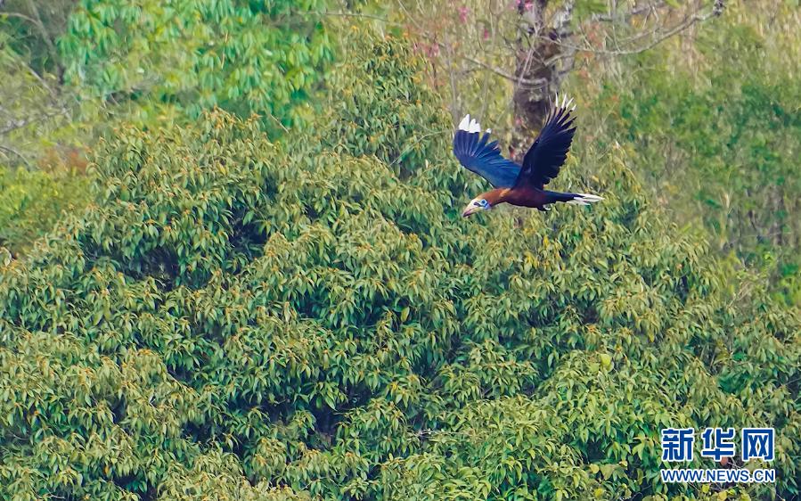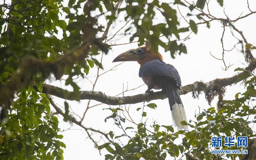 这是3月7日在云南盈江县境内拍摄到的棕颈犀鸟。新华社发(尹以祜摄)