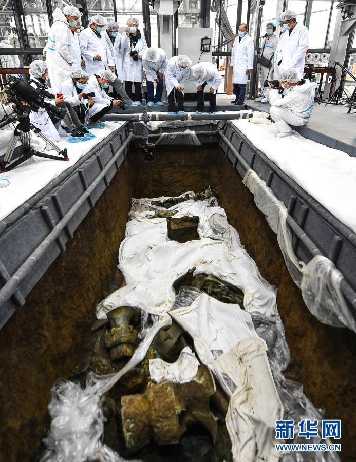 如今的发掘现场,被大跨度钢结构大棚覆盖,里面数个通透的玻璃房子将新发现的“祭祀坑”罩住。这个装满各类设备的考古“发掘舱”可以控制温度、湿度,让人惊叹不已。