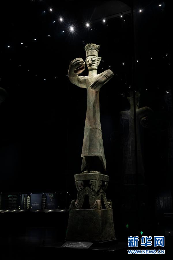 这是在三星堆博物馆拍摄的“青铜大立人”(3月17日摄)。该文物于1986年从三星堆2号“祭祀坑”出土。新华社记者 沈伯韩 摄