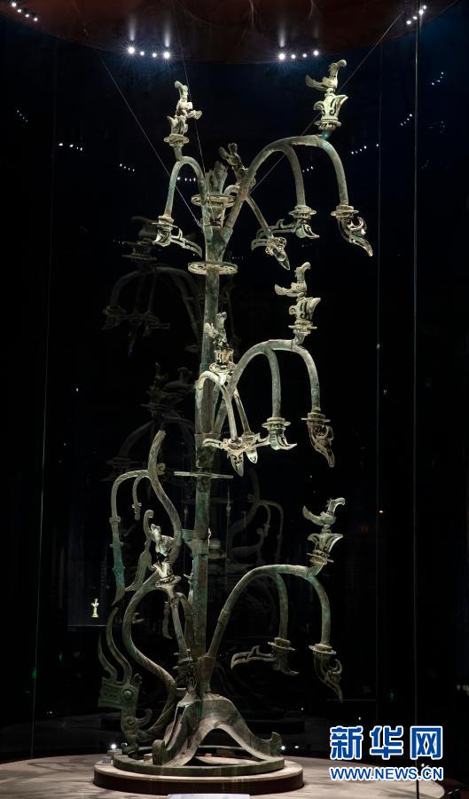 这是在三星堆博物馆拍摄的“青铜神树”(3月17日摄)。该文物于1986年从三星堆2号“祭祀坑”出土。新华社记者 沈伯韩 摄