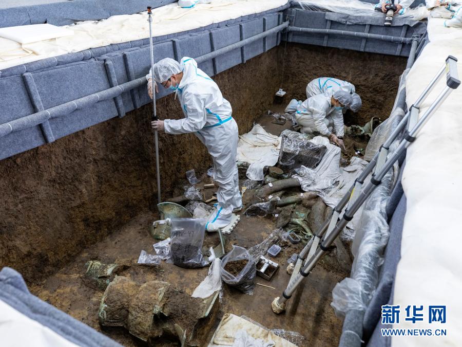 此次四川省广汉市三星堆遗址考古发掘和保护研究充分运用现代科技手段,实现考古发掘、科技考古与文物保护全过程紧密结合。考古发掘现场被大跨度钢结构大棚覆盖,里面有数个通透的玻璃“考古舱”将新发现的6个“祭祀坑”罩住。这些“考古舱”不仅能控制发掘现场的温度、湿度,还能减少工作人员带入现代的微生物、细菌等。“考古舱”里装满各类设备,工作人员穿着“防护服”在其中开展“野外”考古。在“考古舱”旁设有各种应急文物保护实验室和库房,各种先进设备一应俱全。