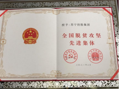 苏宁一直致力于农村工作,在党委带领、党员带动下,服务与精准扶贫和乡村振兴的工作队伍已经超过1000名,累计突入专项资金超过8.5亿元,扶贫实训店、中华特色馆、拼购、家乐福等业态产业扶贫取得良好成效,助力农产品销售累计超过140亿元,被党中央、国务院授予“全国脱贫攻坚先进集体”。