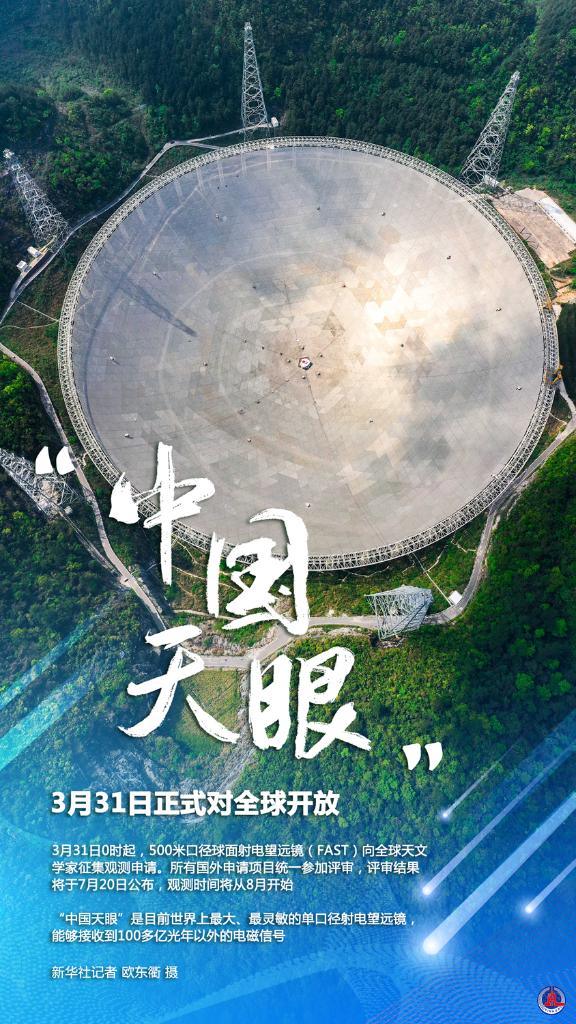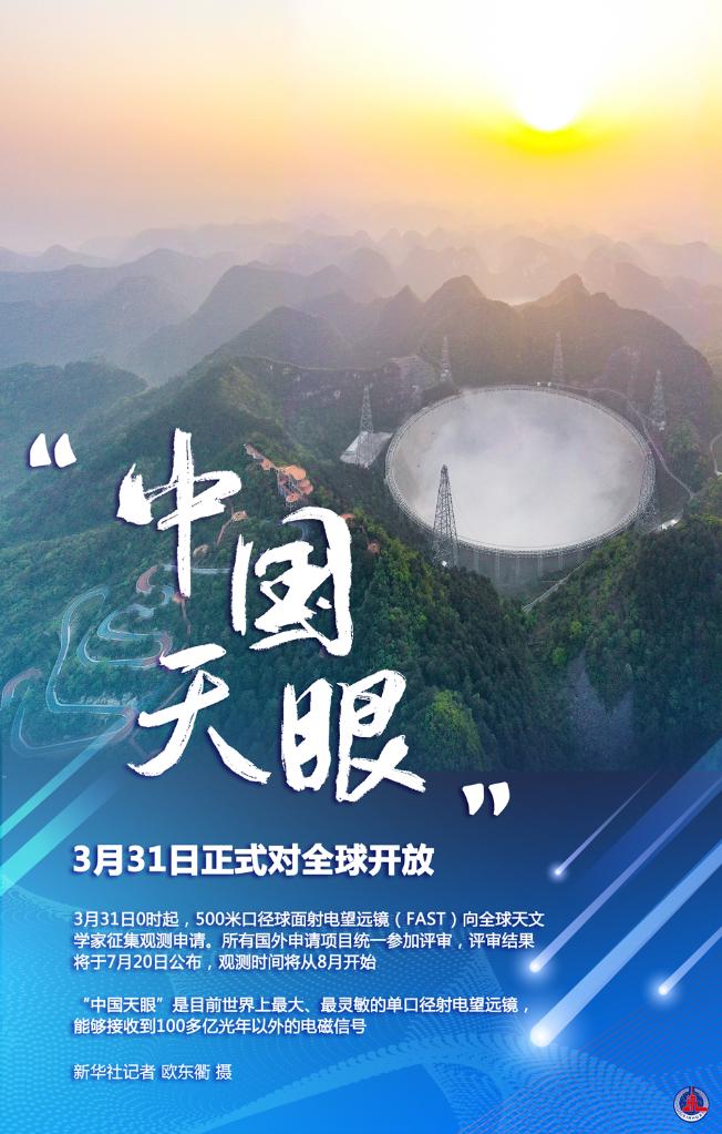 新华社北京3月30日电(记者董瑞丰)这是一封来自“中国天眼”的邀请函——3月31日0时起,500米口径球面射电望远镜(FAST)向全球天文学家征集观测申请。所有国外申请项目统一参加评审,评审结果将于7月20日公布,观测时间将从8月开始。