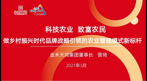 金禾天润集团董事长曾琦在大会上做了题为《科技农业 致富农民——-做乡村振兴时代品牌战略引领的农业管理模式新标杆》的主旨演讲。全文如下: