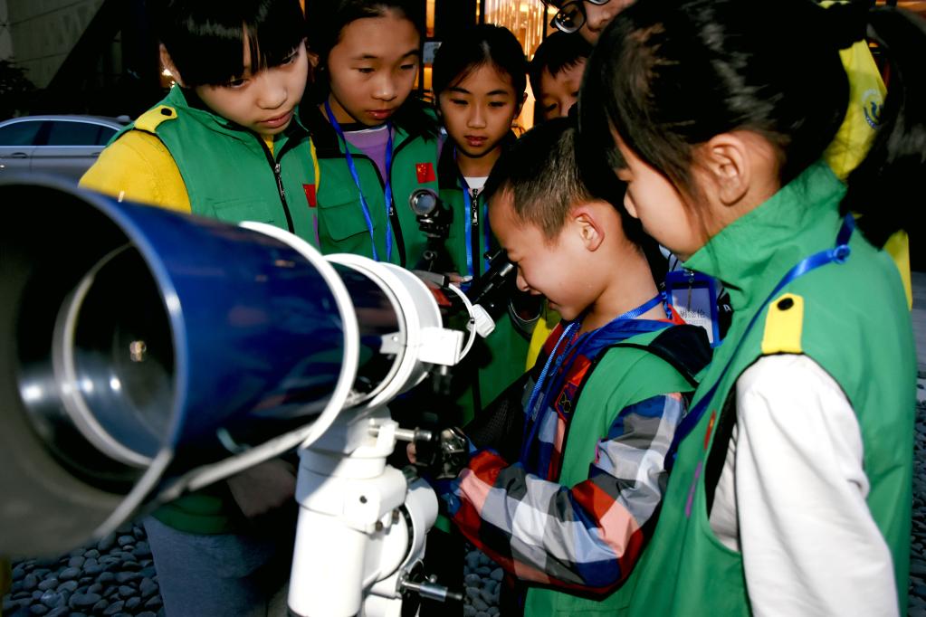 在天文小镇参加科普研学的学生在学习使用望远镜。(新华社发)