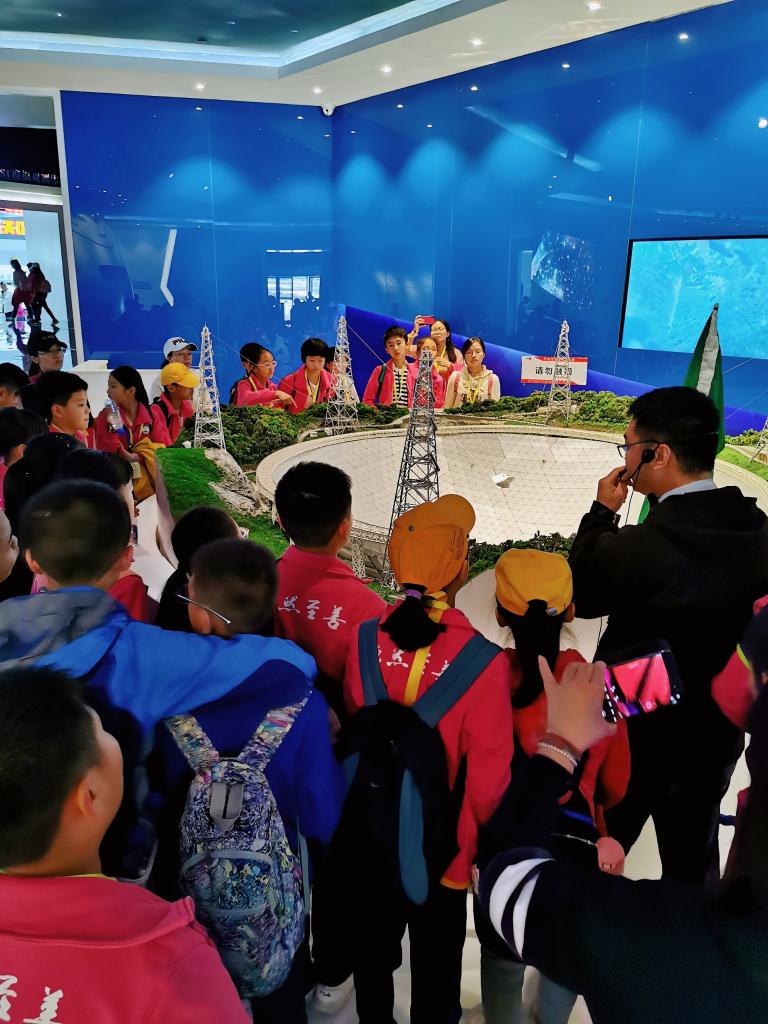 图为在科普基地研学的学生在“中国天眼”模型前听讲解。新华社发