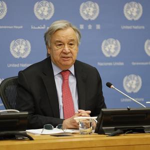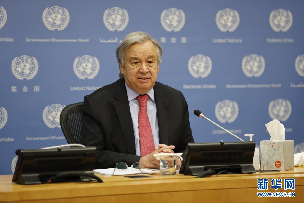 4月19日,联合国秘书长古特雷斯在位于纽约的联合国总部出席新闻发布会。 新华社记者 谢锷 摄
