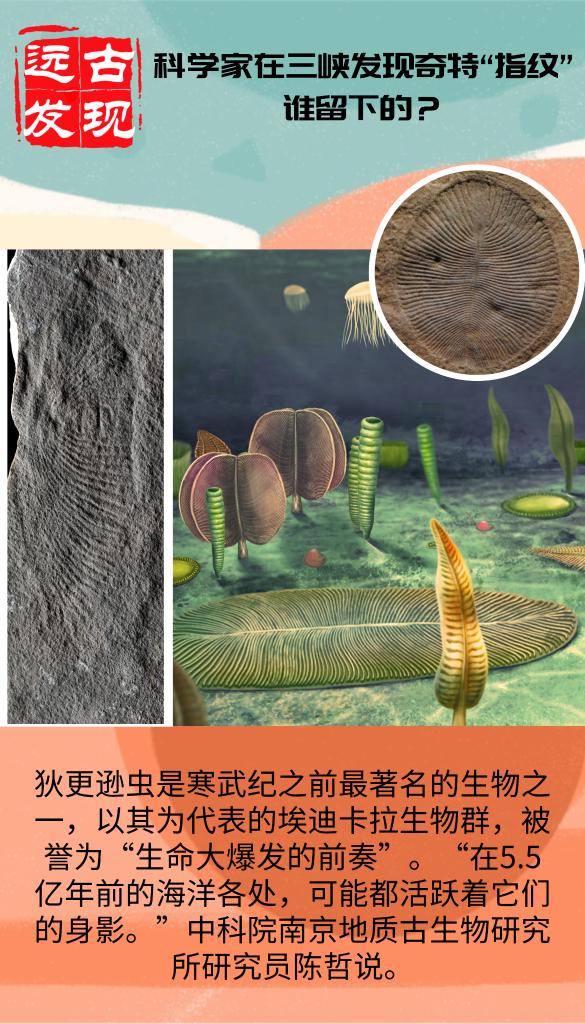 1946年,年轻的地质学家斯普里格被派往澳大利亚内陆评估一个荒废已久的矿场。一天他在山头不经意翻动了一块石头,惊讶地发现石头背面有一个奇特的“指纹”痕迹:这是一块指纹形状的化石。如今,科学家在我国三峡地区也发现了这种化石。神秘“指纹”的“主人”到底是谁?