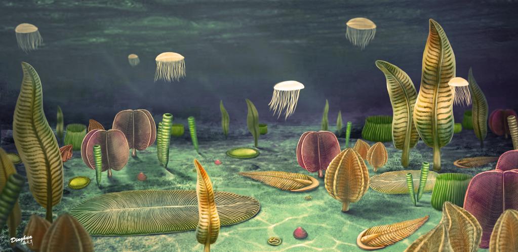 埃迪卡拉动物群复原图。中国科学院南京地质古生物研究所杨定华绘图。