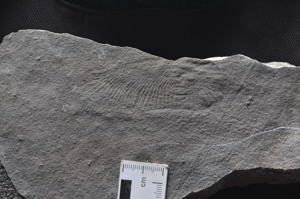 此次发现的狄更逊虫化石保存在石灰岩中。化石保存的是一枚不完整的狄更逊虫标本,其中有狄更逊虫标志性的横向体节等形态特征。化石整体长度约8厘米,样貌上看很像一个残留了一半的人类指纹,只是大小比真正的指纹大很多。