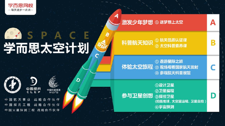 与此同时,学而思网校还计划邀请航天科研专家与网校教研人员组成“领航专家团”,邀请航天教育专家与网校主讲教师组成“领航教师团”,共同担任“学而思太空计划”的“领航人”,将航天知识与学科知识深度结合,全方位培养孩子的科学思维。