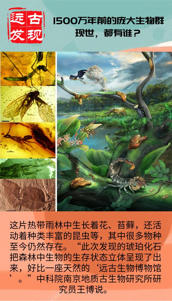 “特别是此次发现的琥珀化石,把1500万年前森林中生物的生存状态立体呈现了出来,好比一座天然的‘远古生物博物馆’。”王博说。