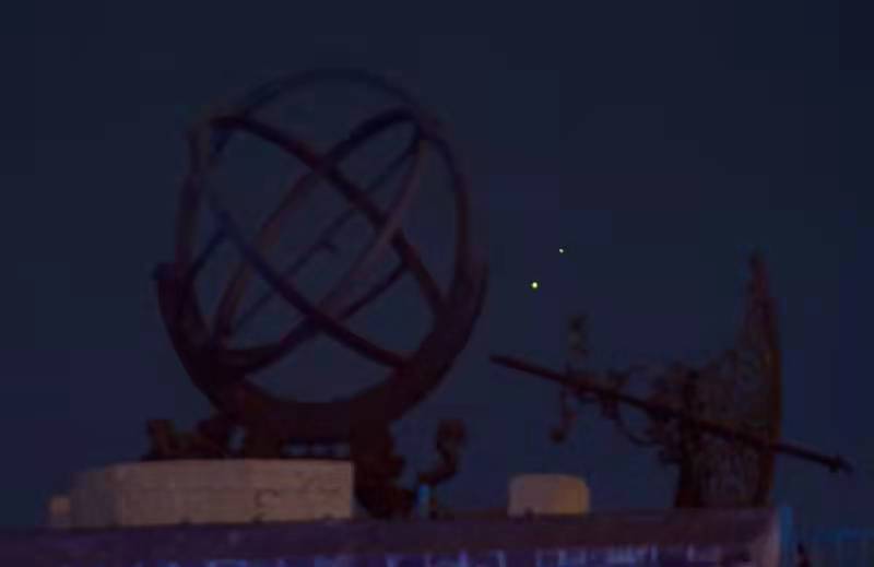 北京市天文爱好者郑志2020年12月21日在古观象台拍摄的“土木同框”照片。(郑志供图)