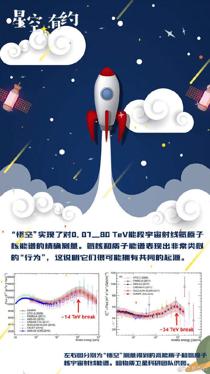 中国暗物质卫星项目团队19日再次公布科学成果。基于四年半的在轨观测数据,“悟空”绘出迄今最精确的高能氦原子核宇宙射线能谱,并观察到能谱新结构。这一发现可能预示存在一处未知的宇宙射线源。