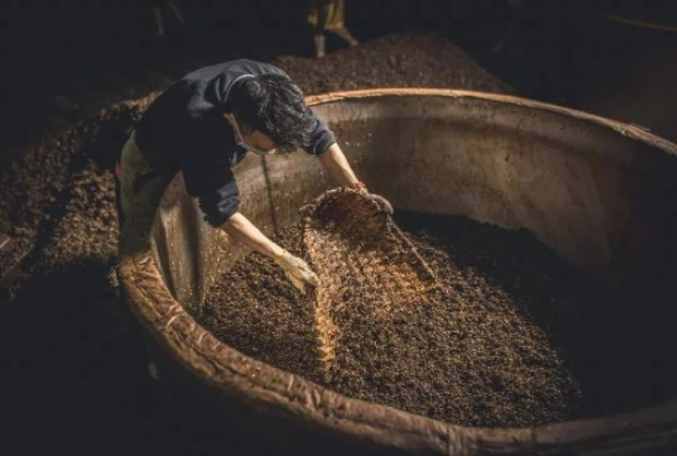用来蒸熟制茅台酒的高粱不应该是完整的高粱粒或是完全磨碎的高粱“面”,而是“二八开”的——两成碎高粱和八成整粒高梁的混合体。熟高梁发酵后,掺人入拌匀的那些生高粱再发酵、蒸馏、又是“三七开”的碎、整高梁。