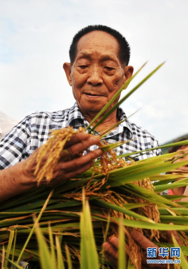 2013年8月19日,袁隆平院士在广西桂林市灌阳县黄关镇联德村袁隆平超级稻第四期攻关示范片查看水稻生长情况。新华社记者 陆波岸 摄