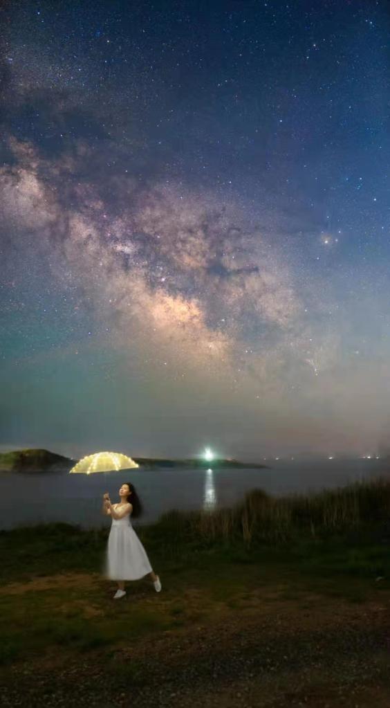 山东省天文爱好者张冰冰2021年6月在青岛市即墨区田横岛拍摄的银河。(本人供图)