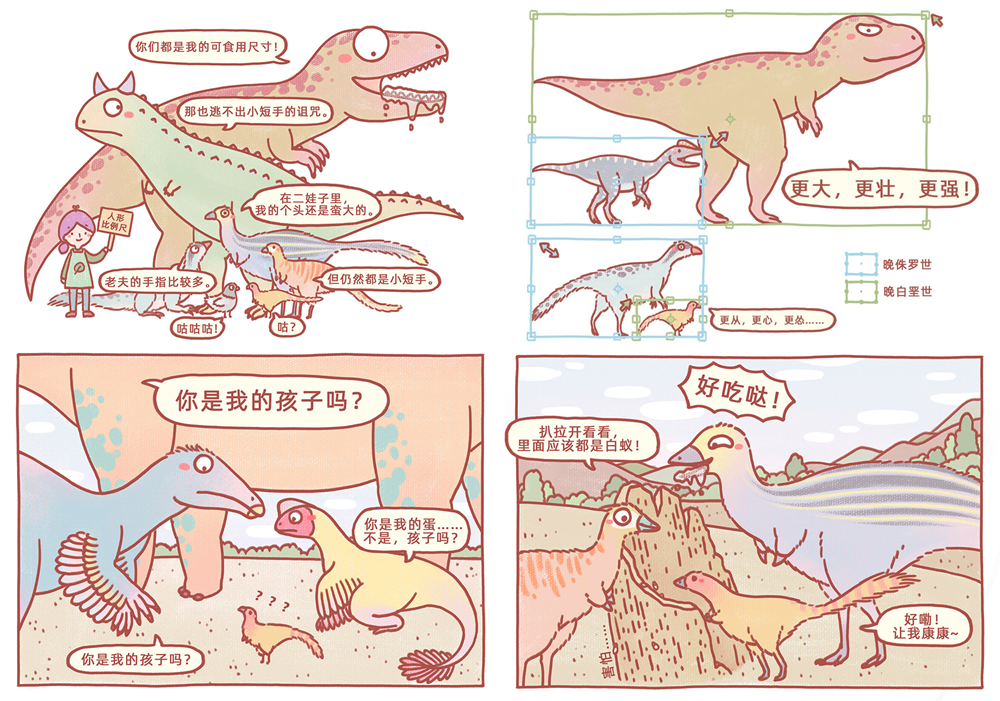 “漫”话恐龙演化史——阿尔瓦雷斯龙类的小型化故事。烨子绘,中科院古脊椎所供图