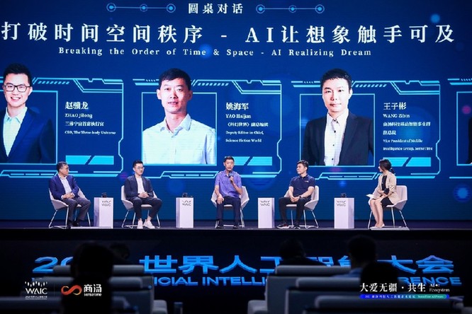 在本届“大爱无疆·共生”人工智能企业论坛期间,上海科技馆馆长王小明、《科幻世界》副总编辑姚海军、三体宇宙首席执行官赵骥龙,以及商汤科技移动智能事业群副总裁王子彬展开了一场中国顶尖科学家,与最大胆、最敢想的科技与科幻“行家”之间的思想碰撞,以“打破时间空间秩序,AI让想象触手可及”为主题,共同探讨了AI科技如何赋能科幻产业,科幻作品又能如何启发科技创新等前沿话题。