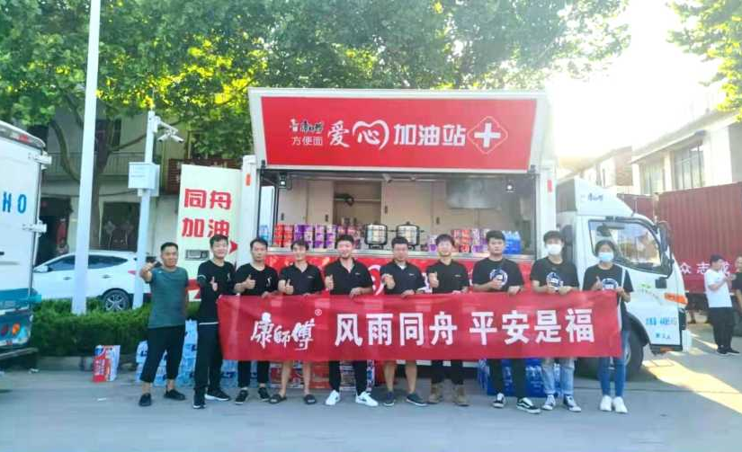 7月22日晚,河南新乡暴雨成灾,卫河决堤,被困人员不断增加,情况十分危急,急需救援力量。康师傅了解到该信息后,立即在包括新乡、安阳、周口、鹤壁等重灾区加大物资救助力度,康师傅支援行动指挥部于24日紧急抽调在郑州市区进行救助的急难救助车,一路赶往新乡。7月24日上午11点,随着第一碗热腾腾的红烧牛肉面端出锅,康师傅的“爱心加油站”渐渐成了抗洪一线的温情食堂,为上万名救灾一线人员和受困群众亮起了一盏暖暖的灯,这才有了本文开头的感人一幕。