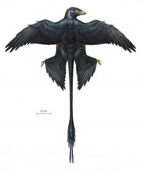 粗略看,通体是黑色。仔细瞧,却能在黑中发现绿、蓝、紫等各种颜色,呈现金属光泽。这种“五彩斑斓的黑”出现在1.2亿年前一种带羽毛的肉食性恐龙——小盗龙身上。科学家是怎么知道小盗龙的颜色的?近日,记者在中科院古脊椎动物与古人类研究所见到两位研究人员,他们揭晓了问题的答案。