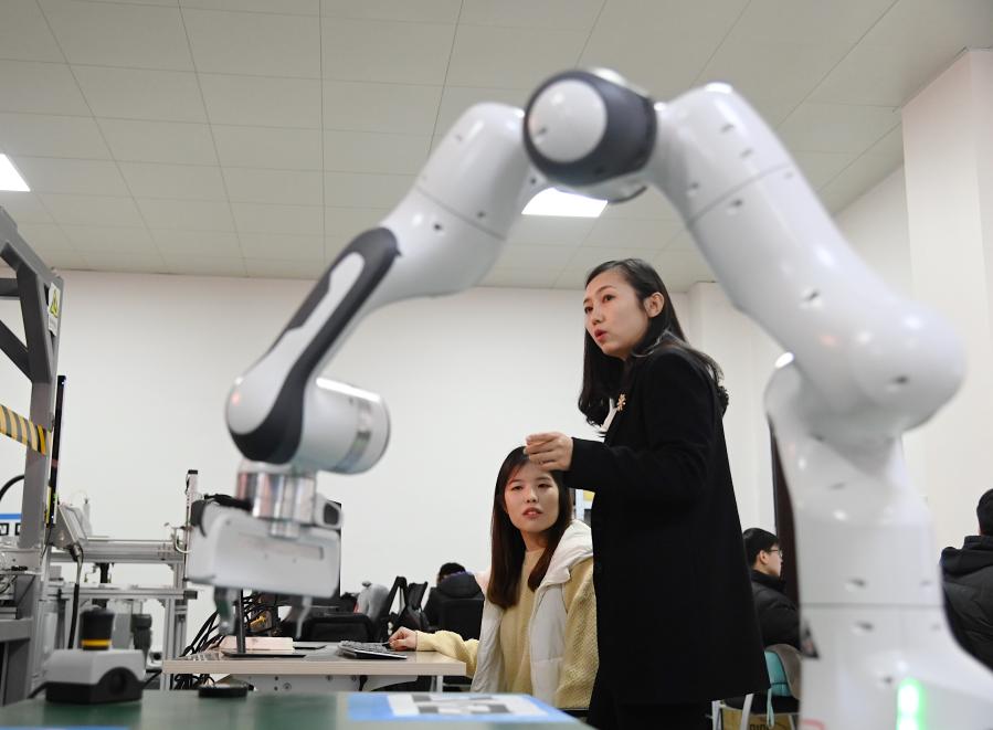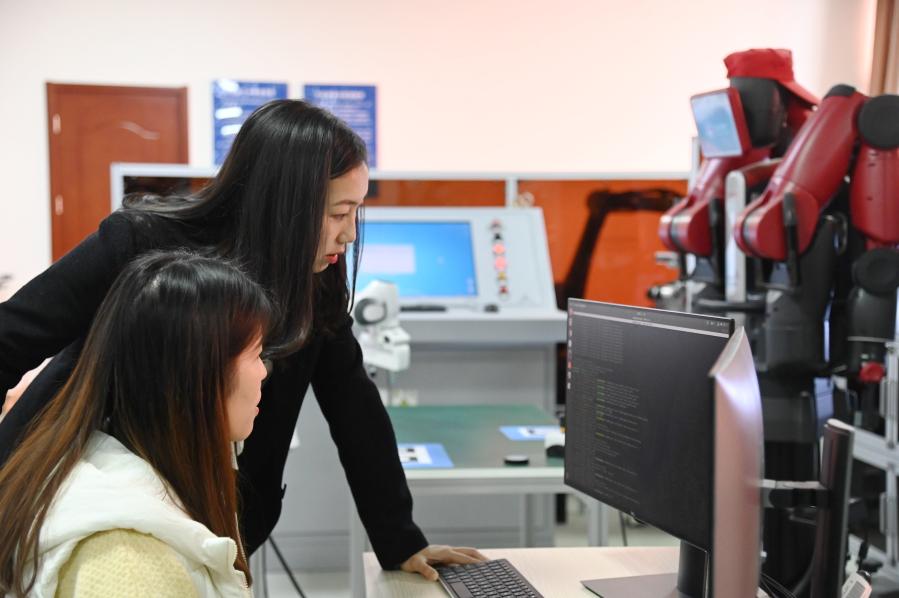 3月2日,梁静在指导郑州大学电气工程学院的学生做实验。新华社记者张浩然摄