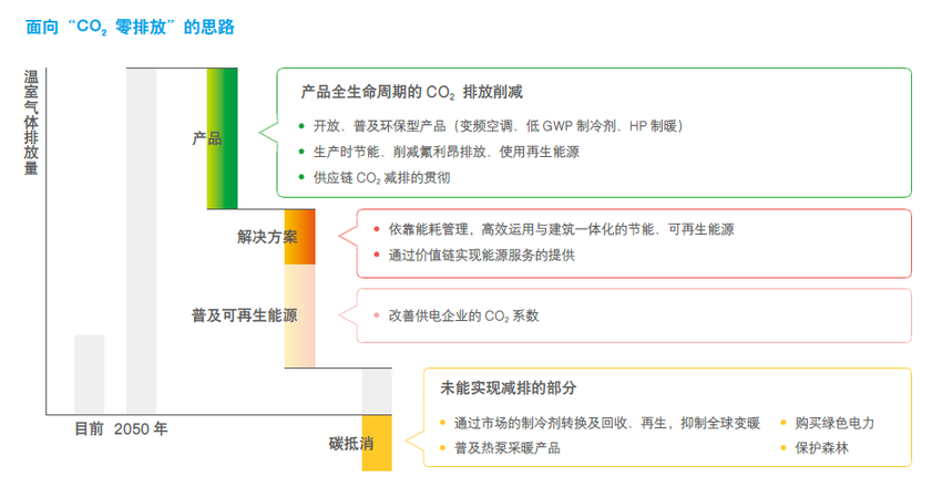 在“碳中和”的大背景下,高能耗、高排放的暖通空调设备是节能降耗的重中之重,作为行业龙头,大金提出并推进《2050环境愿景》,不仅从研发、生产、运输、使用的产品全生命周期逐步减少碳排放,同时运用 IoT 、AI 等开放式的革新技术,共同为改善全球环境问题做出贡献。