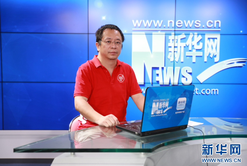 360公司创始人、董事长周鸿祎在接受新华网采访 新华网 周靖杰 摄