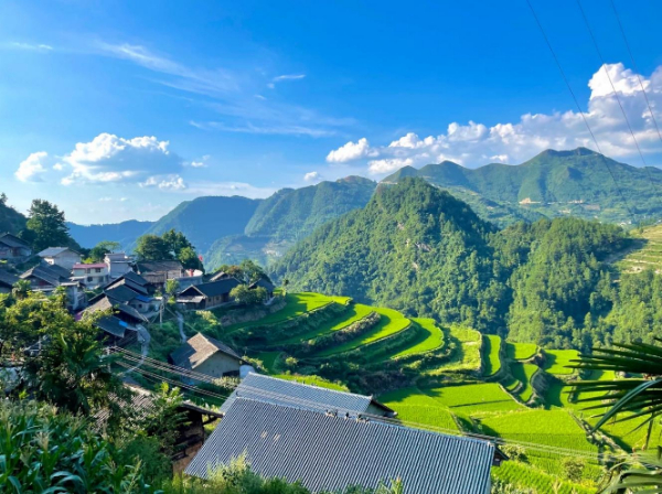 前往支教的大巴车开了六七个小时,抵达山江镇,再往山上走,没大路了。他们找了一辆农用拖拉机,载上全队人和行李、生活物资。龙晶睛和另一位志愿者挤进拖拉机后斗的缝隙里,一路颠簸,尘土飞扬地来到好友村。其他志愿者则踩着泥巴山路,走了两三个小时。