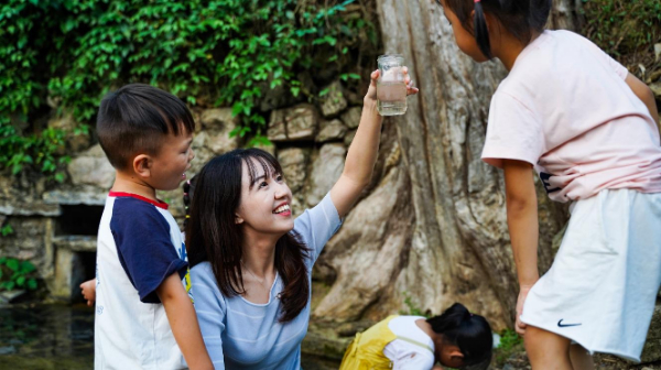 打水对她来说当然是个重体力活,拎半桶水,她的胳膊就开始打颤。可村里那些瘦小单薄的孩子,力气却大得惊人,用一根扁担挑起满满两桶水,在山坡上走得又快又稳。龙晶睛得知,孩子们的父母都在远方打工,他们跟着爷爷奶奶生活,从小就是干活的一把好手。