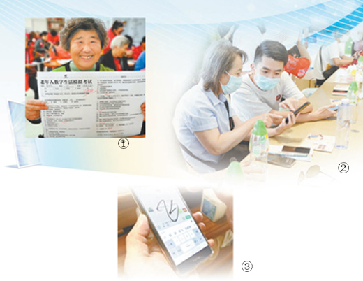 图①:77岁的朱奶奶在南京市“数字生活挑战赛”上考了100分。