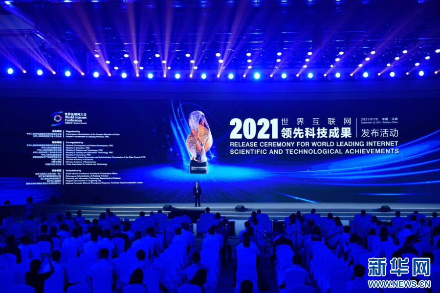 9月26日拍摄的2021世界互联网领先科技成果发布活动现场。 当日,14项世界互联网领先科技成果在浙江乌镇举行的2021年世界互联网大会乌镇峰会上发布。 新华社记者 黄宗治 摄pagebreak