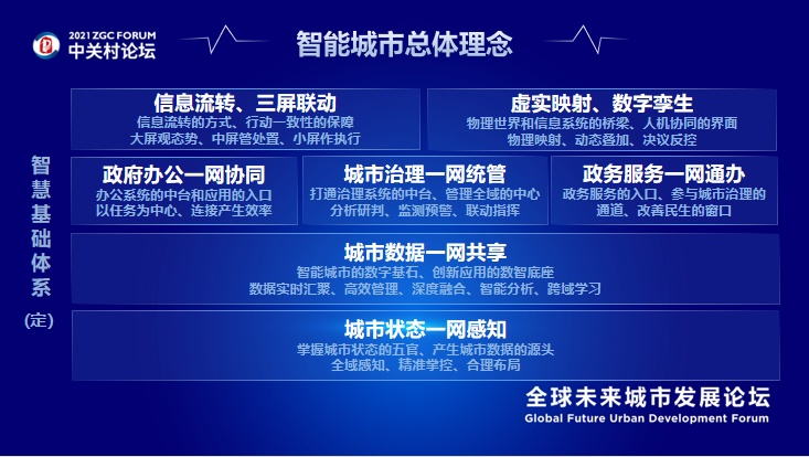 他表示,“五网”各司其职,又有机融合。城市状态一网感知是获取城市状态的直接感官,这里是信息产生的源头;城市数据一网共享是整个智能城市的数字和技术底座,信息在这里统一处理;城市治理一网统管是一个管全域、管中心的治理指挥中心;政府办公一网协同是政府办公中台和所有政府办公应用的入口;政府服务一网统办是市民使用政务服务的入口,也是居民参与城市治理的通道及政府改善民生的窗口。郑宇介绍说,“五网”有效联动和配合,可实现城市治理从以业务为中心向以数据为中心的历史转变。