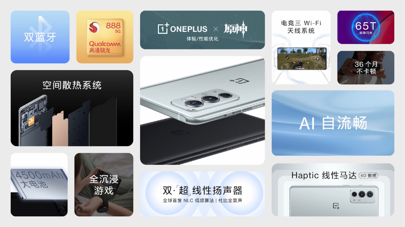 一加9RT搭载骁龙888+LPDDR5+UFS3.1,配合最新的性能速度系统,最大化发挥性能优势。为保证散热输出,一加 9RT的空间散热系统重新设计了手机内部结构和散热路线,采用五重散热材料立体散热,VC散热面积比一加 9 增加 59%,散热效率相较于一加 9 提升了20%,达到了一加散热新高度。