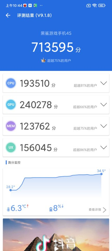 在跑分上,黑鲨游戏手机4S的分数也有了大幅度增长,黑鲨4S安兔兔跑分成绩超过71万,在榜单中排名居前。