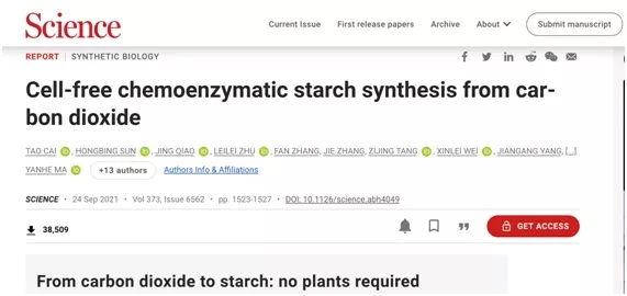 《科学》发表中国科学家人工合成淀粉分子的成功,论文下载量近4万次