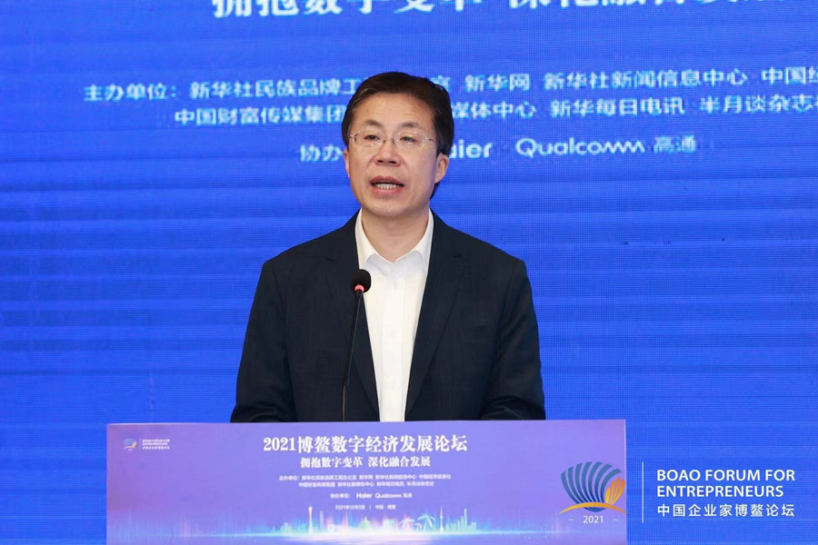 新华网博鳌12月3日电(赵秋玥)2021中国企业家博鳌论坛12月2-5日在海南博鳌举行。论坛期间,“拥抱数字变革 深化融合发展——2021博鳌数字经济发展论坛”于3日举行。论坛邀请各界嘉宾围绕数字经济相关话题深入交流,为促进数字技术与实体经济深度融合,赋能传统产业转型升级,做强做优做大我国数字经济碰撞思想火花,携手共担数字时代责任,共促数字经济繁荣健康发展。中国工业互联网研究院院长鲁春丛在会上表示,当前新一轮科技革命