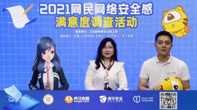 据悉,虎牙直播在支持调研期间调动官网、APP端、微信矩阵、微博矩阵、内宣等企业全渠道参与,并于8月10日在广州总部开设“2021网民网络安全感满意度调查”直播专场,由网警、广东省网络空间安全协会工作人员和虎牙虚拟形象主播同框,以问答的形式就网络安全相关知识和背景开展“云课堂”,加深调查活动价值的传递。该直播全程累计在线观看人次约150万,峰值的观看人次超30万。