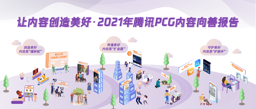 12月20日,腾讯发布了《让内容创造美好——2021年腾讯PCG内容向善报告》(以下简称“报告”),回顾并总结了2021年腾讯平台与内容事业群(以下简称“腾讯PCG”)旗下的业务和产品通过将“内容向善”打造为一个“产品”的尝试,有计划、可持续地践行腾讯公司“科技向善”的愿景和腾讯PCG“让内容创造美好”的使命。