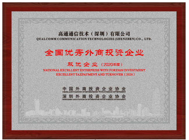 高通通信技术(深圳)有限公司获评“全国优秀外商投资企业-双优企业(2020年度)”称号