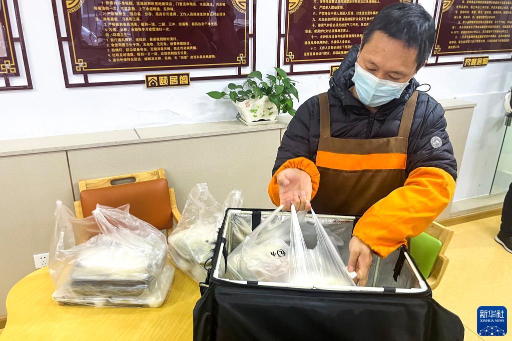 2022年11月3日,吉林省长春市朝阳区东田社区助老餐厅的工作人员准备为社区居民送餐。新华社记者 赵丹丹 摄