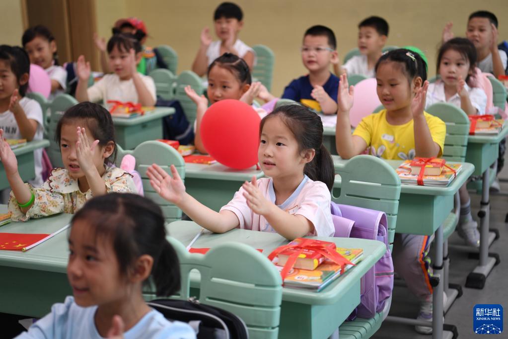 2022年9月1日,河北雄安新区容东片区容和悦容小学一年级新生在上开学第一课。新华社记者 朱旭东 摄