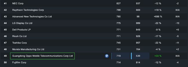 IFI Claims是美国知识产权信息服务商,其收录了大量来自美国专利商标局(USPTO)的专利数据,在全球范围具有权威性和可信度。最新数据显示,2021年,OPPO在美国获得了719项专利授权,相比2020年增长33%。